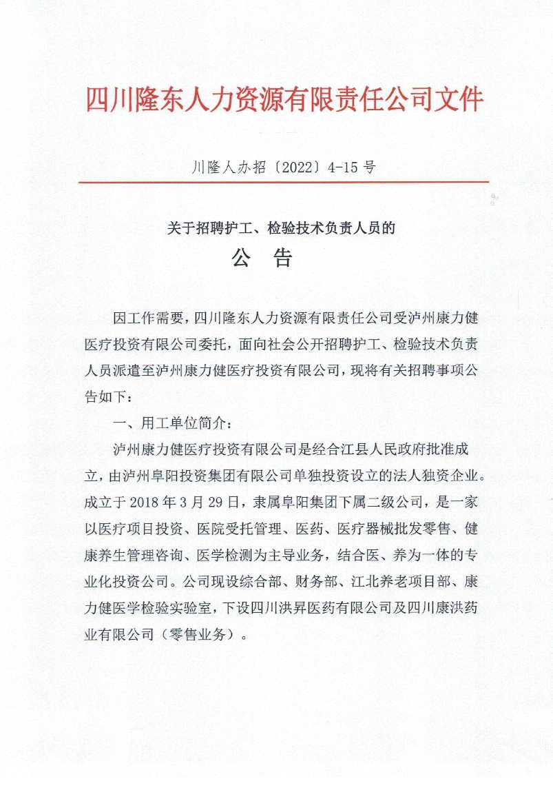 關(guān)于招聘護(hù)工、檢驗(yàn)技術(shù)負(fù)責(zé)人員的公告
